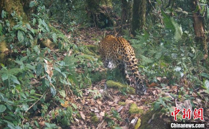 圖為雅魯藏布大峽谷國家級自然保護區內的西藏自治區墨脫縣記錄到的金錢豹的活動影像。山水自然保護中心供圖