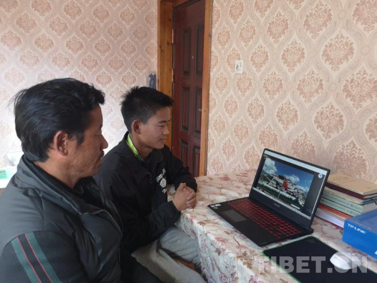 圖為學(xué)生和家長在家中通過網(wǎng)絡(luò)共同參與紀念活動 圖片由拉薩中學(xué)提供