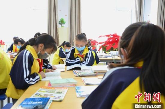 圖為化隆縣第一小學(xué)的學(xué)生們?cè)陂営[室讀書(shū)。 魯?shù)り?yáng) 攝