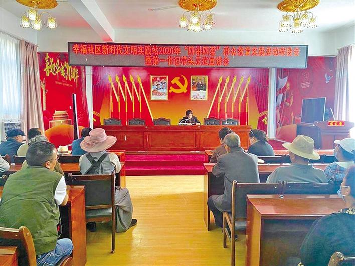 近日,拉薩市功德林街道幸福社區組織社區居民代表、組長、聯戶代表等共100余人,開展了新時代文明實踐站2020年“四講四愛”群眾教育實踐活動轉段會暨第一書記帶頭示范宣講會。