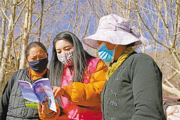 圖為近日,西藏山南市瓊結(jié)縣“四講四愛(ài)”群眾教育實(shí)踐活動(dòng)辦工作人員為村民宣講疫情防控知識(shí)及“講文明愛(ài)生活”內(nèi)容。 記者 耿銳仙 攝