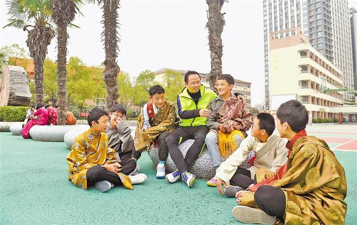 合肥三十五中副校長儲軍與西藏班同學促膝談心。西藏日報記者 索朗瓊珠 次仁片多 攝