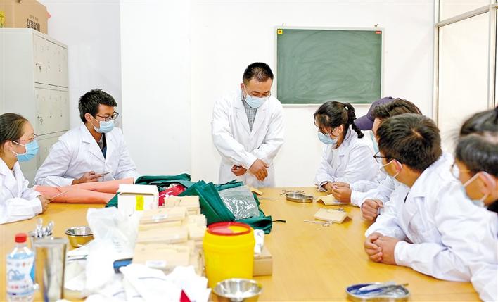 圖為西藏藏醫藥大學援藏教師遲德財(中)在給學生授課。