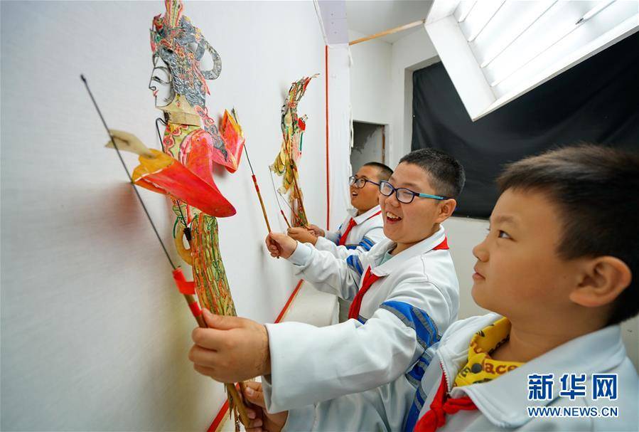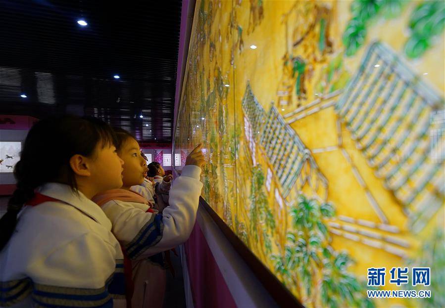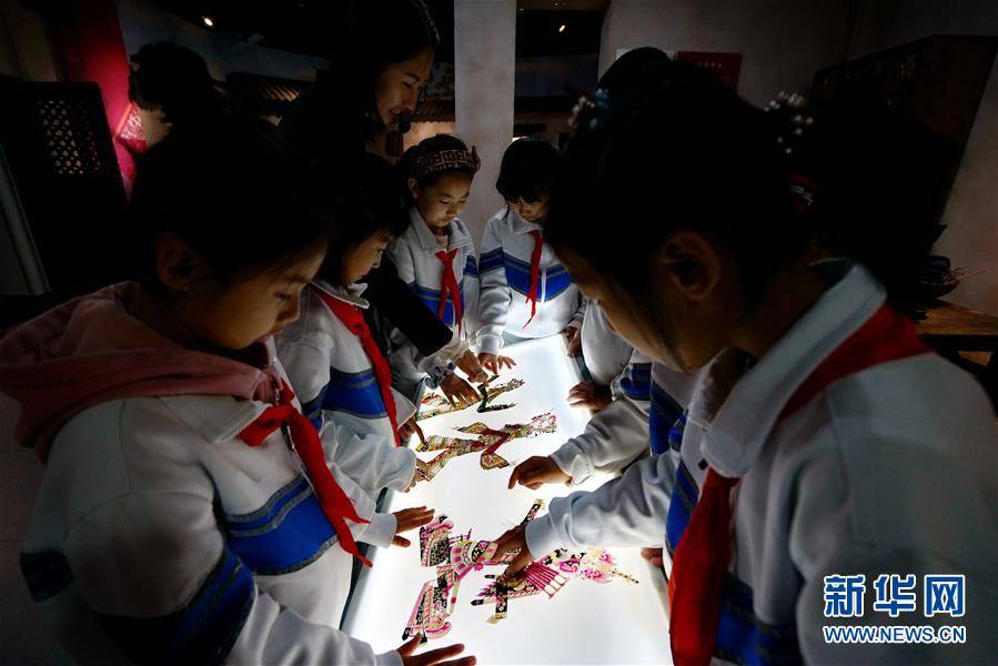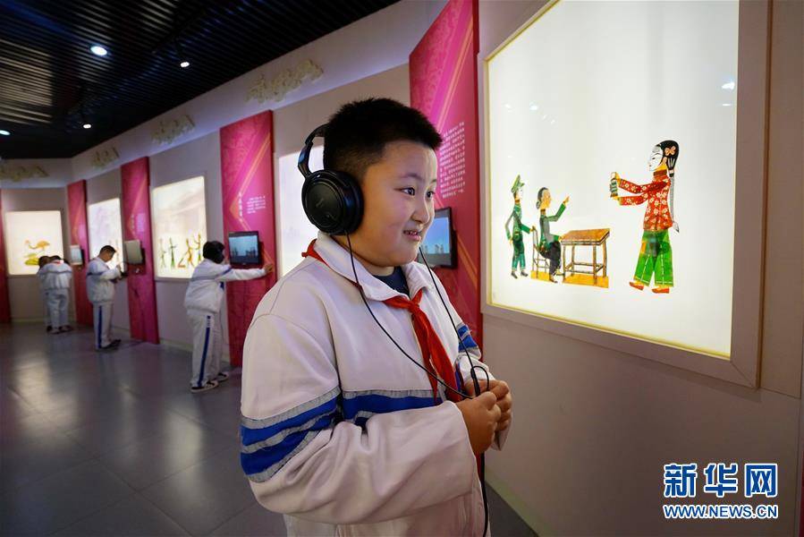 10月19日,小學生們在中國灤州皮影博物館內參觀一幅皮影長卷。 今年以來,河北省灤州市橫渠實驗小學成立皮影興趣社團,在當地的中國灤州皮影博物館開設校外課堂,組織學生定期參觀、學習,增強學生對傳統文化的了解。