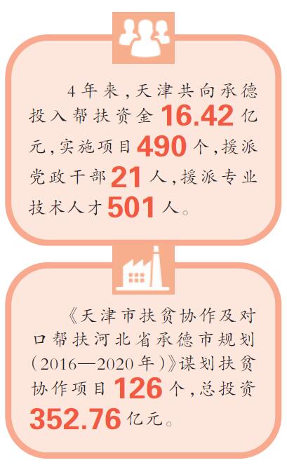 在東西部扶貧協(xié)作背景下,天津與承德攜手,共同編制實(shí)施《天津市扶貧協(xié)作及對(duì)口幫扶河北省承德市規(guī)劃(2016—2020年)》,謀劃扶貧協(xié)作項(xiàng)目126個(gè),總投資352.76億元。