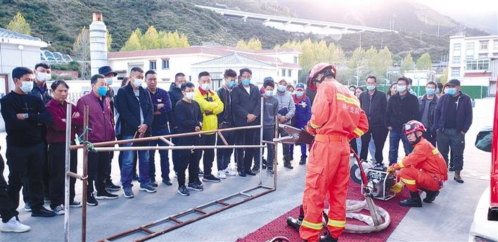 近日,西藏林芝工布江達縣消防救援大隊組織工布江達縣密集場所從業人員舉行消防站開放日活動。