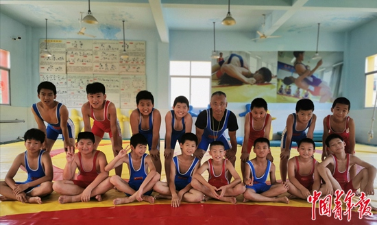 校長朱志輝和他的麻小摔跤隊。中青報·中青網記者 陳卓瓊/攝