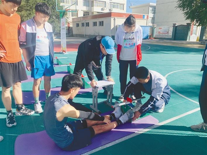 “全民健身·活力中國”國家體育鍛煉標準達標測驗賽日喀則站活動中,學生在進行坐位體前屈測試。記者 潘璐 攝