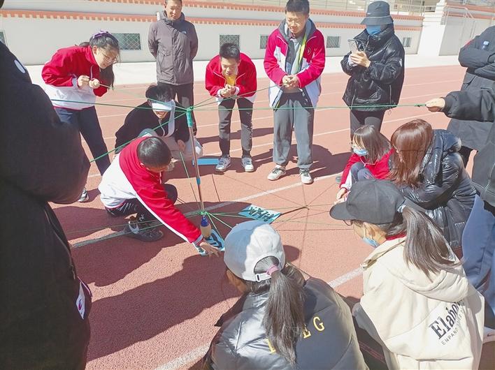圖為西藏自治區“體育項目進校園”拉薩北京中學站活動中,學生通過“動力繩”游戲培養團隊協作能力。 記者 潘璐 攝