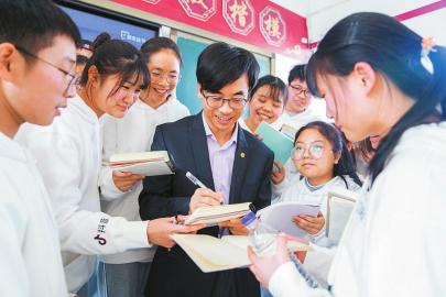 分享結(jié)束后,學(xué)生們圍著孟憲實(shí)開展進(jìn)一步交流,并紛紛請他簽名。“我是一名美術(shù)藝術(shù)生,但是一直對歷史很感興趣。孟老師的講解更是讓我堅信,以后要更深入地了解歷史知識,在之后的美術(shù)作品里融入更多的歷史氣息。”高二年級的潘虹羽,中午吃飯時依然在回味這場共讀活動。