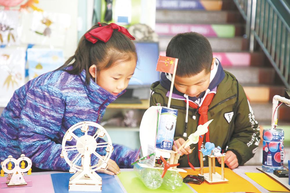學生們進行科技小制作。范生棟 攝