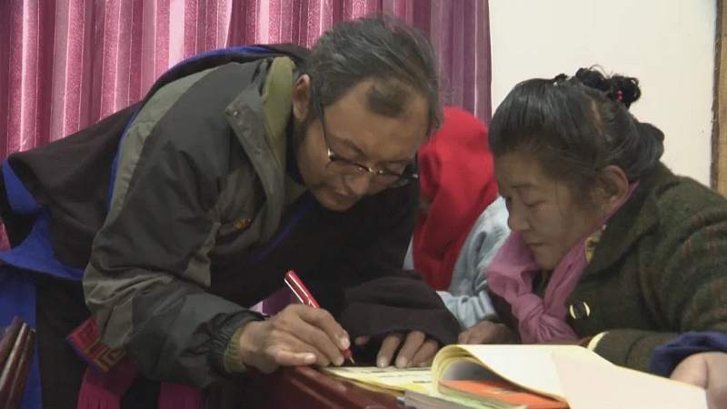 年末的安多早已步入寒冬,忙碌的時節已接近尾聲。隨著牧閑時節的到來,帕那鎮一村的“夜校”熱鬧非凡,不時傳來一陣陣讀書聲。每年這個時候,帕那鎮一村宣傳委員嘎達會按時組織牧民們一起補習他們曾經落下的藏文、語文、數學基礎和政策知識、科學文化、法律法規等知識內容。