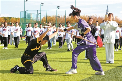 近日,華東政法大學在松江校區舉行首屆中華傳統體育大會,300余名華政師生組成的代表隊進行了八段錦展示。近年來,華東政法大學積極推廣中華傳統體育項目,以體育人、以文化人,引導師生傳承和發揚中華優秀傳統文化,增強文化自信。