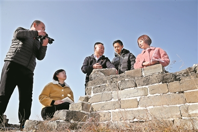 “讓每一塊城磚開口,讓每一處遺址說話。”古北口鎮(zhèn)中心小學(xué)校長(zhǎng)徐國(guó)文(左三)帶領(lǐng)教師把教研活動(dòng)搬到了長(zhǎng)城上,探討如何打破課程設(shè)置“壁壘”,在考察、尋訪、探究、實(shí)踐中培養(yǎng)學(xué)生堅(jiān)毅品格。樊世剛 攝
