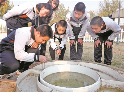 水庫(kù)地區(qū)的降水量怎樣?蒸發(fā)量如何?這些都是水庫(kù)中學(xué)學(xué)生關(guān)注的問題,大家要在課題研究中讀懂家鄉(xiāng)的山水。瞧,學(xué)生們那股專注勁兒,儼然水環(huán)境監(jiān)測(cè)的“小專家”。樊世剛 攝