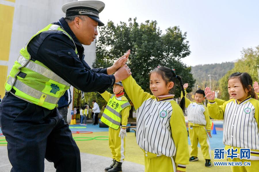 11月30日,浙江省湖州市長興縣龍山幼兒園的孩子們在學習交通指揮手勢。在12月2日“全國交通安全日”即將到來之際,各地舉行了形式多樣的教育活動,讓孩子們在趣味活動中樹立交通安全法治意識,養成文明出行好習慣。新華社發(譚云俸 攝)