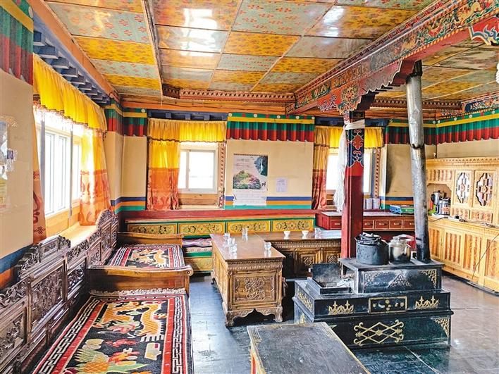 次仁玉珍今年60歲,家里有兩個女兒。走進次仁玉珍家,干凈的小院、寬敞的房子、屋內(nèi)各式家具家電一應俱全?!耙郧?,家里的房子又小又破,只有幾十平方米,每逢下雨,屋子還漏雨。2016年,政府幫我們翻修擴建了房子,我們自己只出了5000元,現(xiàn)在的新房有250平方米左右?!贝笈畠捍稳恃虢鹫f。