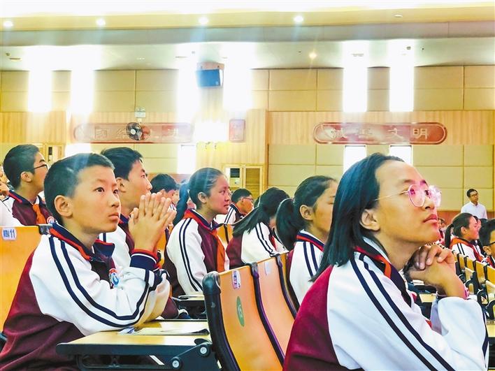 珠海四中內地西藏班師生認真聽取報告。