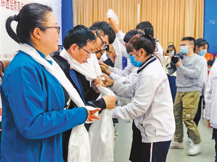 內地西藏班師生為宣講組敬獻哈達。
