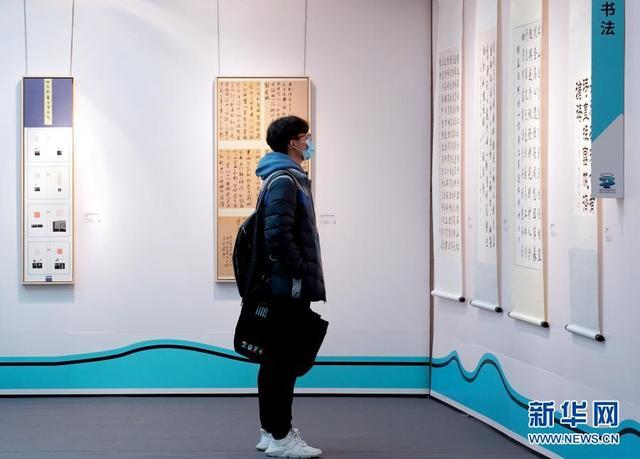 12月15日,一名參觀者在欣賞大學生書法作品。新華社記者 劉穎 攝