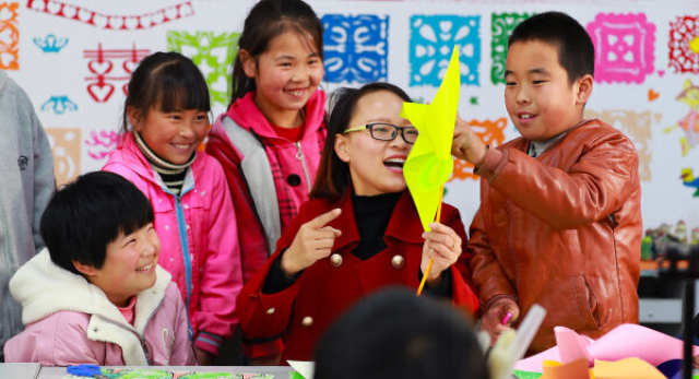 日前,甘肅成縣大坪學區中心校三年級美術課堂上,全科教師任翠瓊輔導學生做手工。[詳細] -