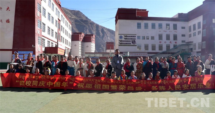 活動中,孩子和老師們都穿著民族特有的節(jié)日盛裝,臉上洋溢著幸福的笑容,手舉象征著美好祝福的白色哈達,發(fā)自內(nèi)心地說出了“祝祖國繁榮昌盛”“祝中華兒女合家歡樂、身體健康、扎西德勒”等純潔而又真切的祝福。