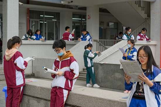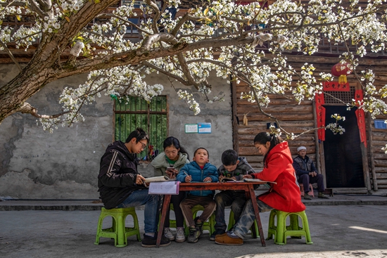 2020年4月26日,重慶市城口縣高楠鄉方斗村村民吳明安的院壩里,5名學生在全縣中小學復學前一天抓緊時間完成家庭作業。隨著疫情防控常態化,全國多個省市陸續復學。周健/攝