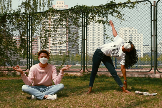 2020年4月14日,北京,對外經濟貿易大學的來華留學生在戶外鍛煉。李享/攝