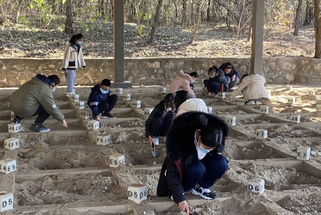 學生在自然/社會空間課程中模擬考古