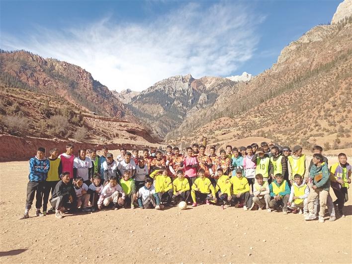 圖為寒假期間昌都市洛隆縣馬利鎮瓦河村的“足球小子”合影。(圖片由南加巴鄧提供)