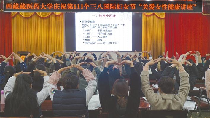 圖為西藏藏醫藥大學的女性教職工參加“關愛女性健康講座”活動現場。