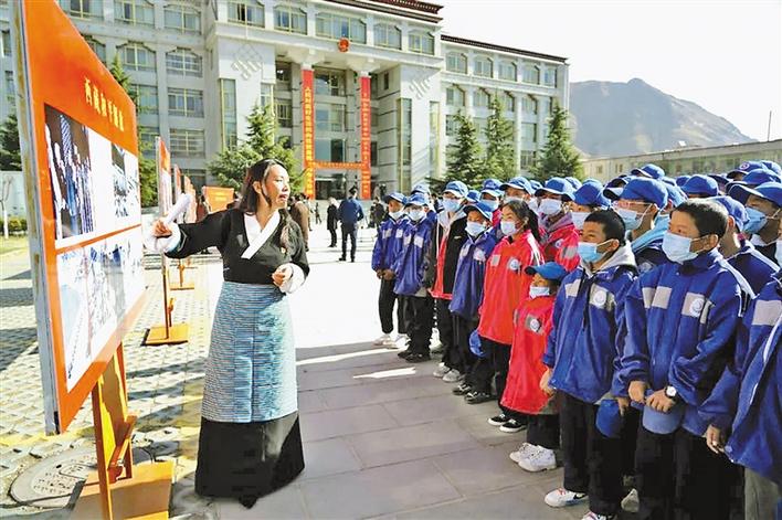 拉薩組織學生參觀“西藏和平解放史”展板活動