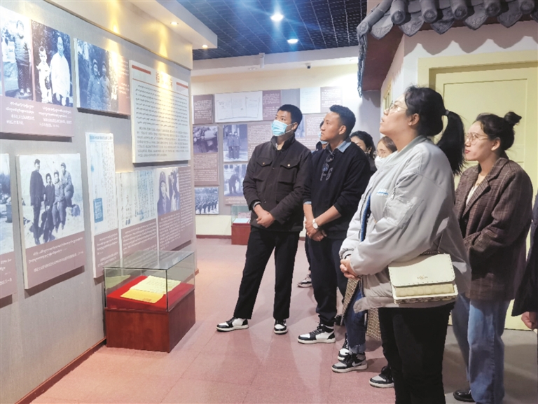 圖為拉薩凈土數字經濟產業集團員工參觀譚冠三紀念館。凃 瓊攝