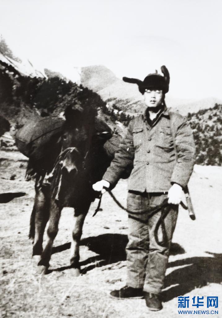 1981年,李純民在西藏昌都類烏齊縣下鄉工作途中(2021年4月21日翻拍)。新華社發