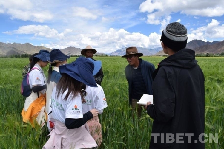 圖為中國農業大學人文科考隊在青稞田里了解情況