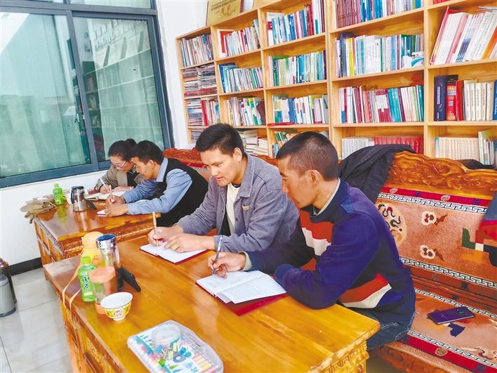 圖為薩迦縣木拉鄉基層工作者通過手機參與線上“微講堂”培訓班學習。記者 汪純 攝