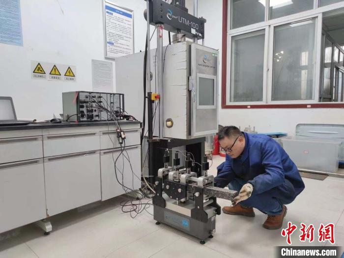 黃恒偉與團(tuán)隊(duì)為莫喀高鐵項(xiàng)目進(jìn)行四點(diǎn)彎曲疲勞試驗(yàn)。 受訪者供圖