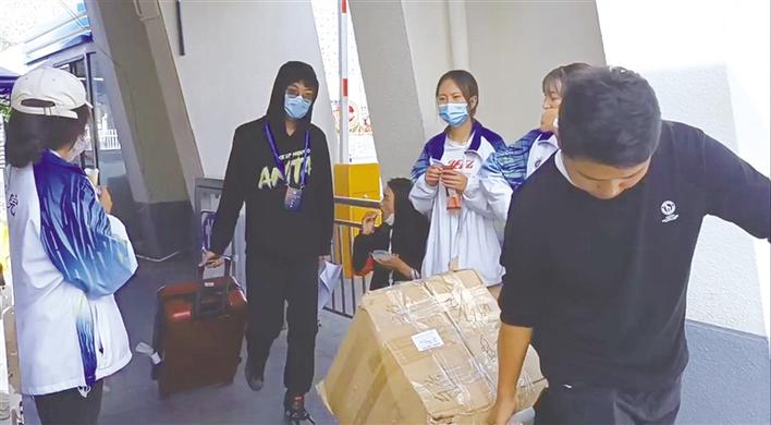 據迎新工作人員介紹,新生入校后,黨員志愿服務隊會對新生進行身份核驗、測體溫,學生志愿服務隊會幫新生將行李搬運至新生報到處,新生在報到處辦理好入學手續后,志愿服務隊的工作人員還會負責將學生行李搬運至新生宿舍。