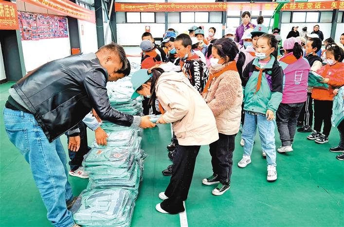 日前,一批由江蘇揚州太陽雨愛心志愿者團隊125名愛心人士捐贈的價值3萬多元的522個愛心書包,送到了西藏山南市錯那縣曲卓木鄉小學的學生手中。活動深化了兩地人民的友誼,鑄牢了中華民族共同體意識。