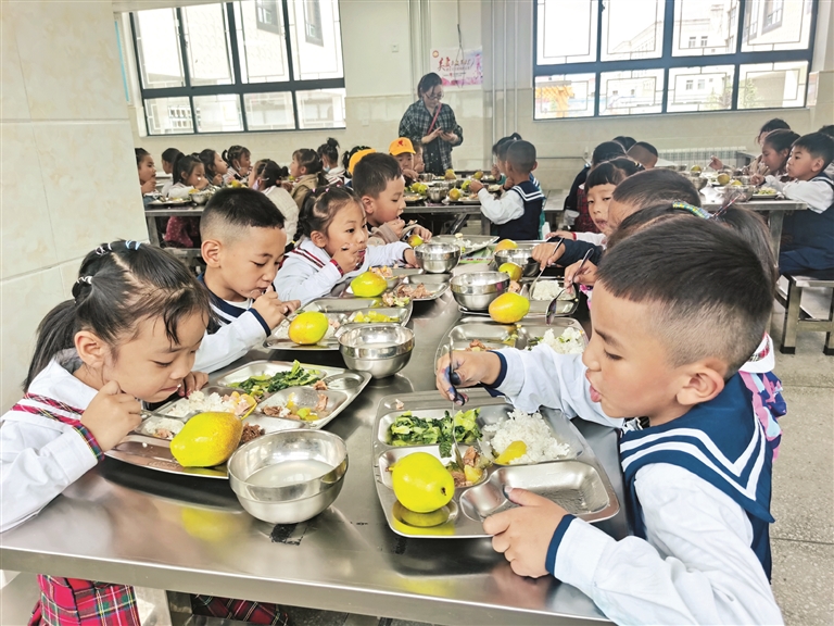 “學校沒有提供午餐前,中午特別忙。我是在路上趕,母親在家里忙,把小孩接回家吃飯,吃完后馬上又要趕回學校。現在學校提供午餐,實在是太方便了。”拉薩市第一小學四年級學生家長央金說道。
