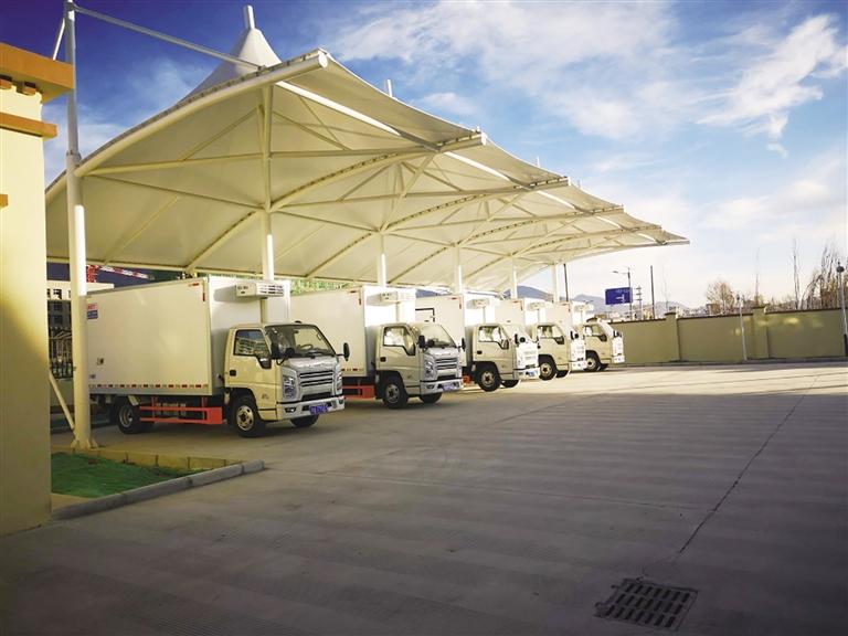27日上午9時許,記者來到位于318國道南側的拉薩市城關區凈土中央廚房,看見道路兩邊停放著一排排送餐車輛?!澳壳?,我們共有20輛保溫加溫送餐車輛,而且每輛送餐車有兩把鑰匙,一把在工作人員手中,另一把在學校工作人員手中。當午餐送到學校后,兩把鑰匙同時使用才能將車輛打開?!崩_市城關區凈土中央廚房運營管理有限公司總經理葉濤介紹,這樣做,主要是為了保證運送途中的食品安全。