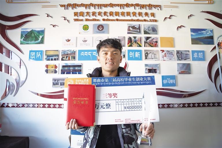 日前,在那曲市第三屆高校畢業生創業大賽上,來自西藏火花文化傳播有限責任公司的拉旺多吉靠藏式設計和奶渣堆創新設計贏得了現場評委以及廣大觀眾的認可,最終獲得大賽三等獎。賽后,記者走進了位于那曲市色尼區拉薩北路的西藏火花文化傳播有限責任公司,實地探訪了拉旺多吉的創業故事。