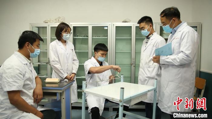 圖為學生在進行外科打結考核。(資料圖) 甘肅中醫藥大學第一臨床醫學院供圖
