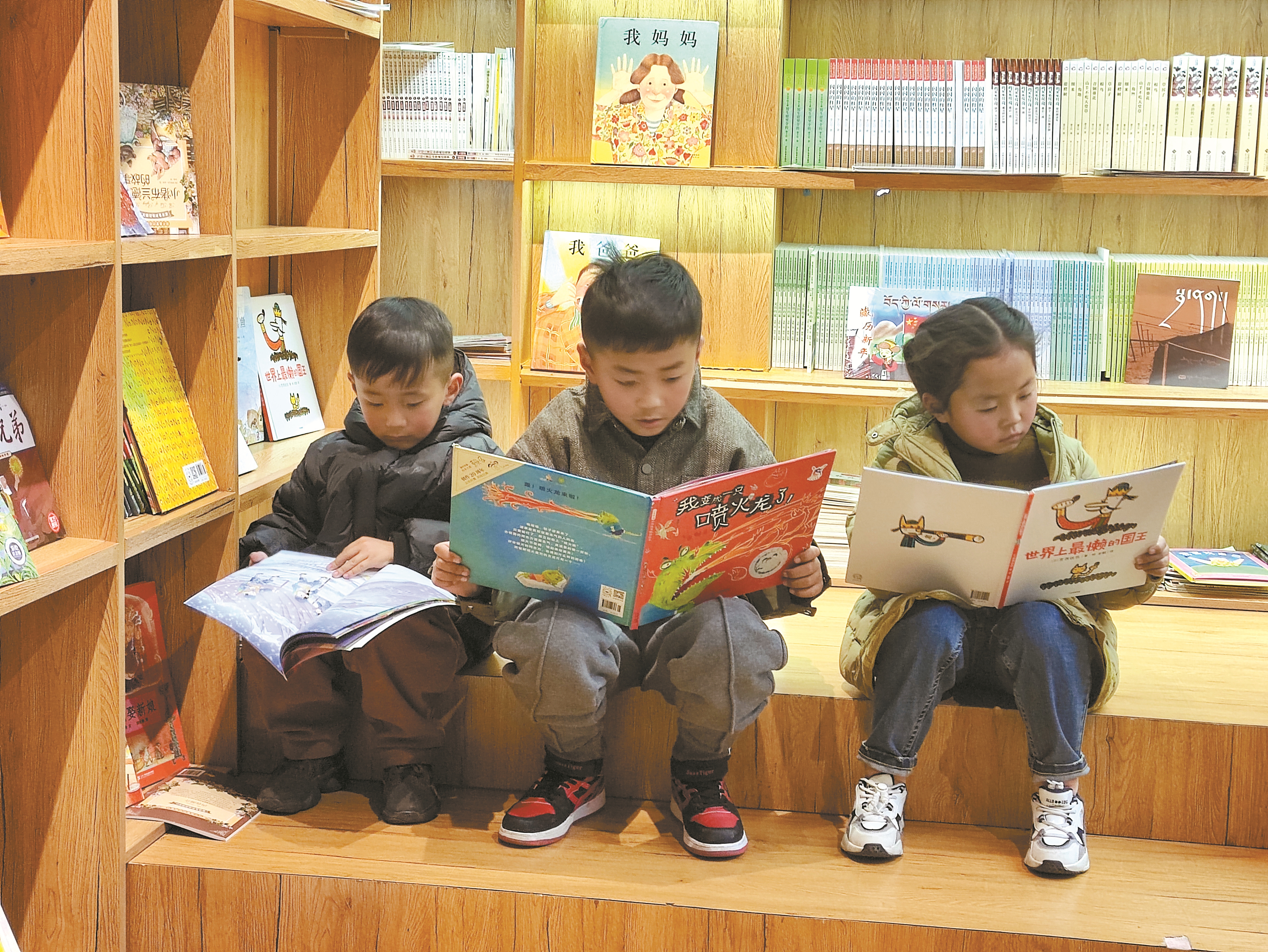 位于城關區萬達廣場三樓的時光讀書驛站,環境舒適,并開辟有專門的讀書區域,設置了桌椅,眾多讀者在這里專心學習和閱讀。該讀書驛站還開辟了兒童閱讀專區,孩子們坐在一起、手里捧著圖畫書籍看得津津有味。時光讀書驛站工作人員德吉說:“因為我們書吧在一站式購物商場里,平時會有很多讀者,這兩天剛好是藏歷新年,再加上是周末,所以人很多。我們這有各種暢銷書,不管是中文還是藏文及英文書籍都很豐富。因為我們開辟了兒童區,有許多供孩子閱讀的繪本,平時周末的時候,會有許多家長帶孩子來。”