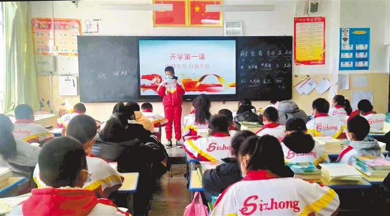 拉薩市城關區第四中學的師生在進行開學第一課