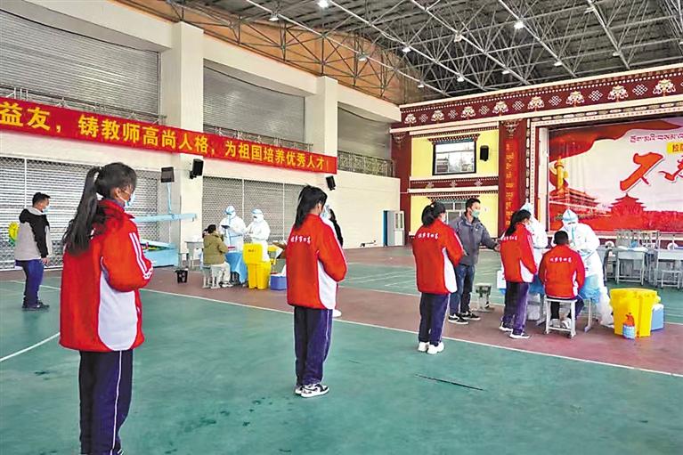 為確保校園安全和師生健康,近日,拉薩市堆龍德慶區疫情防控指揮部在拉薩市第四高級中學開展了全員核酸檢測應急演練,共計完成2629人份核酸采樣。