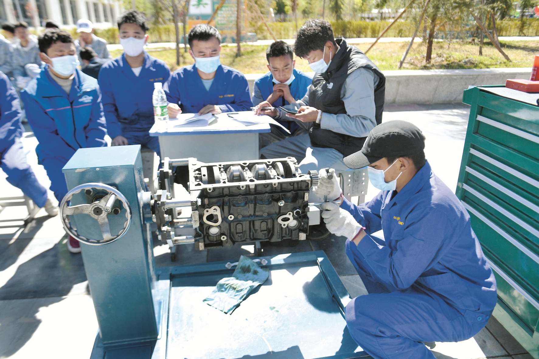 圖為拉薩市一職學生正在展示專業技能。 拉薩融媒記者 巴桑次仁攝