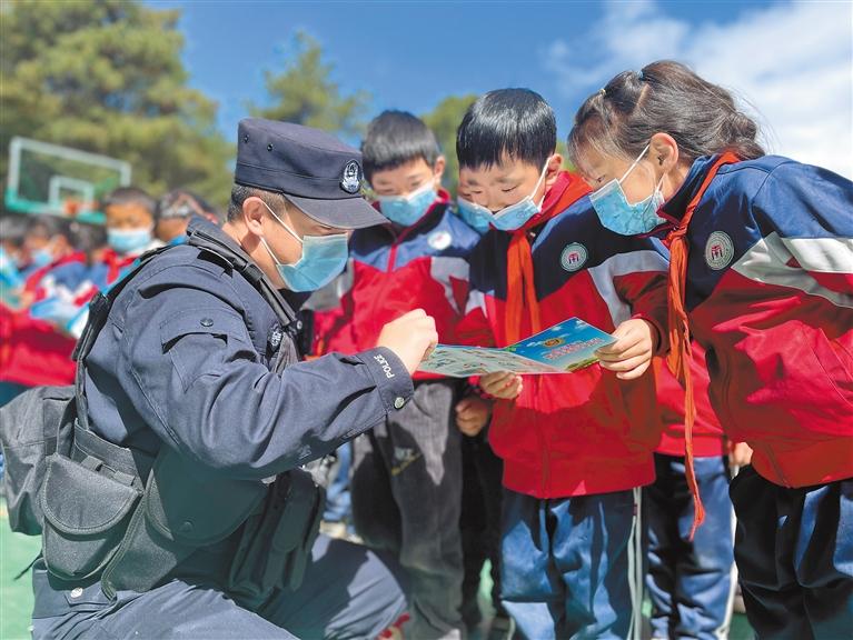 西藏林芝邊境管理支隊南伊邊境派出所移民管理警察走進學校宣傳安全防護知識