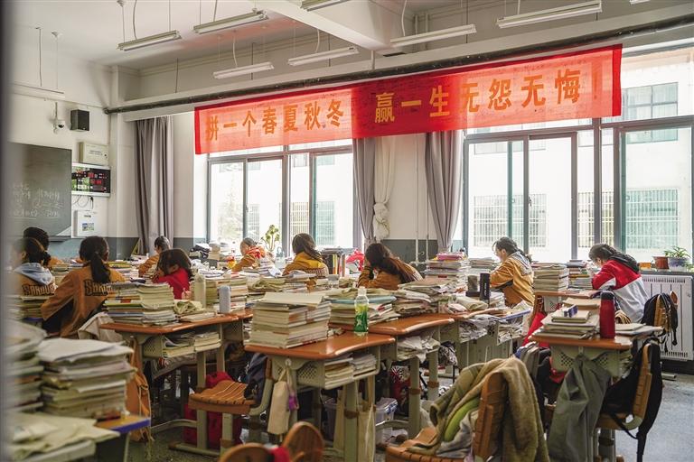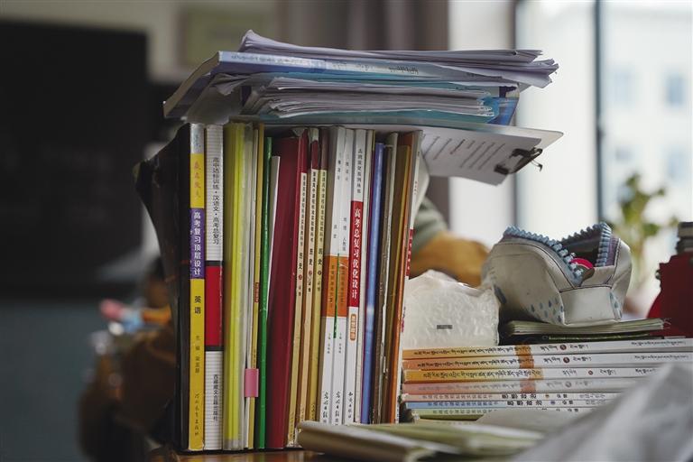 走進高三年級教學樓,走廊里不時傳來朗朗讀書聲,每一個角落都充斥著同學們為青春和夢想奮力拼搏的氣息。在高三(9)班的教室里,學生們正在全神貫注地聽課,時而看課本、時而做筆記,神情認真且專注。桌面上堆積的高高的書籍、練習冊和教室墻上掛著的高考倒計時牌都在時刻提醒著同學們,高考離他們越來越近了。“現在是高考復習的關鍵時期,同學們學得很認真,班里的學習氛圍特別好,大家互相幫助、共同進步。希望我們通過自己的努力,考上理想的大學,實現自己的夢想。”學生斯朗卓瑪告訴記者。