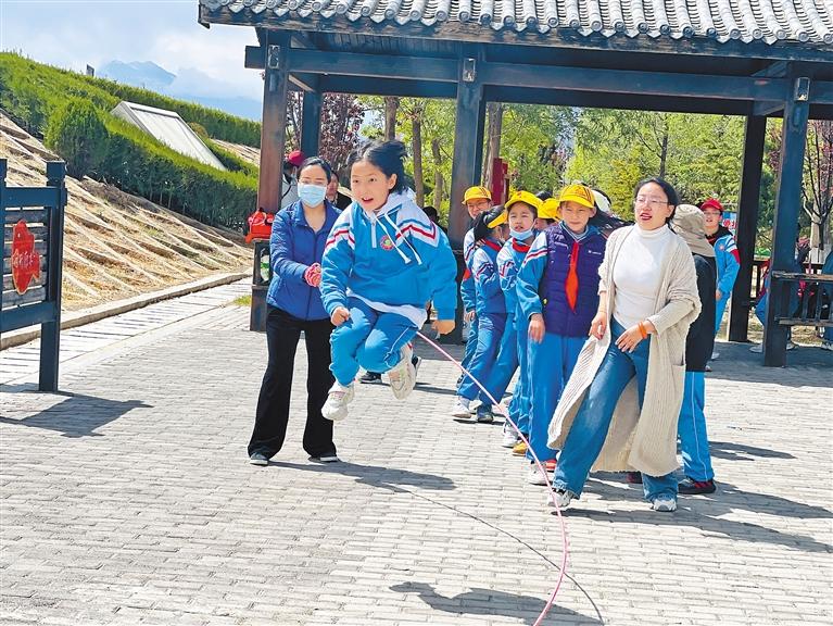 圖為拉薩市第一小學學生們在老師的帶領下開展戶外活動。